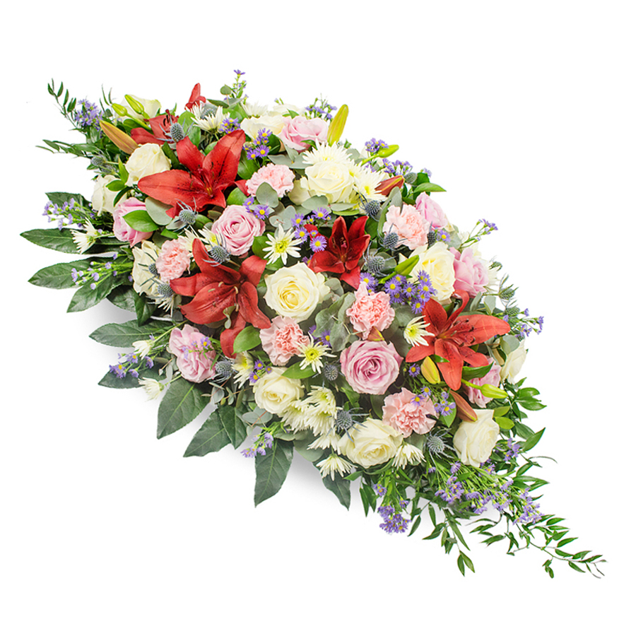 Available in Original, Deluxe and Grand sizes, this casket spray is designed to suit intimate farewells or larger funeral services. Each arrangement is crafted by our skilled florists in Fortis Green using fresh, premium blooms for lasting beauty throughout the service.