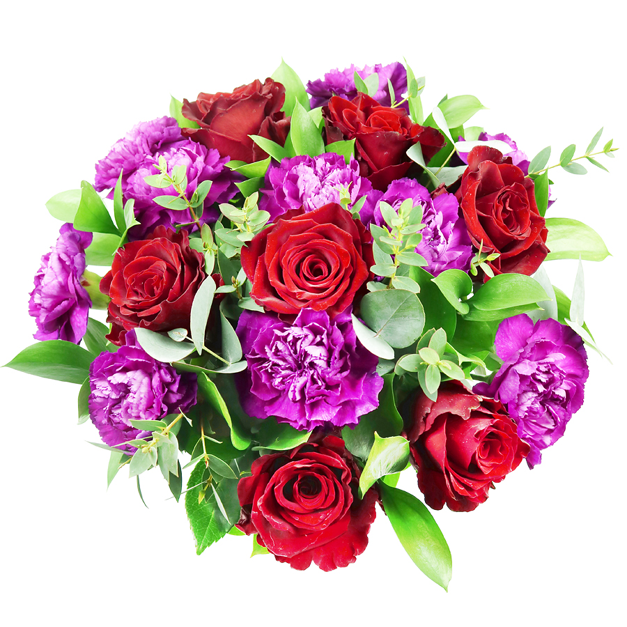 Bring home the radiance of love with our Vibrant Passion Bouquet. This artfully arranged bouquet combines the passionate tones of red roses and cerise carnations with the soft elegance of ruscus and eucalyptus. Each flower is selected by our expert team to ensure the absolute best in freshness and quality.
