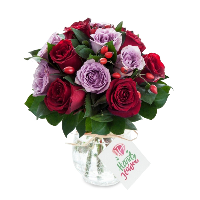 Welcome elegance into your home with our luxurious bouquet. Combining the lush beauty of velvet roses with the mysterious charm of purple shade roses, this arrangement is a bold expression of refined taste and sophistication.